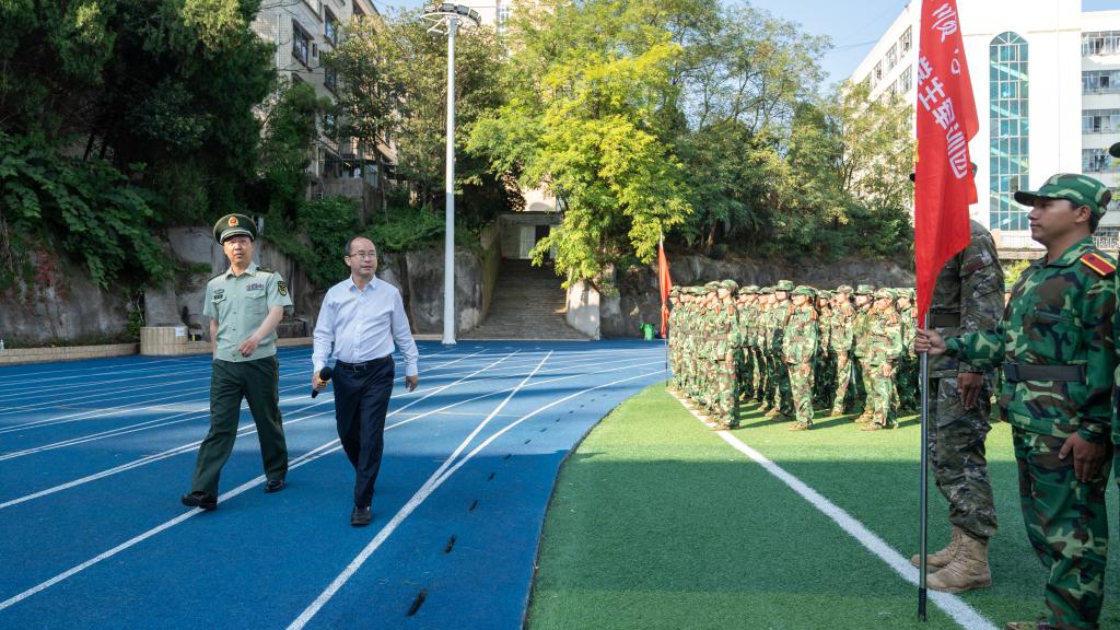 安顺学院党委书记罗荣彬检视由2024级参训学生组成的23支连队
