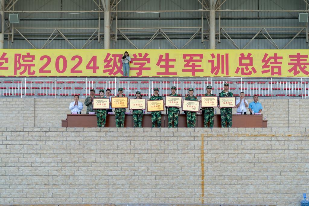 2024级学生军训总结表彰大会在士气高昂的《人民军队忠于党》歌声中落下帷幕。