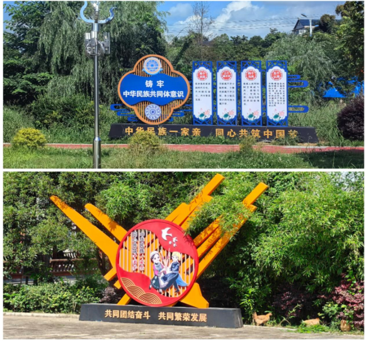 一路上,“铸牢中华民族共同体意识”的标语格外耀眼,似在天地间树起精神旗帜。“两个共同”“三个离不开”“四个与共”“五个认同”,这些话语是民族团结最坚定的誓言,像一条条纽带,诉说着各民族手拉手、肩并肩,共赴中国梦的决心。这让我们明白,此次三下乡,不只是邂逅民族风情的旅程,更是解码团结密码的探索,每一步都踩在民族交融的脉络上。