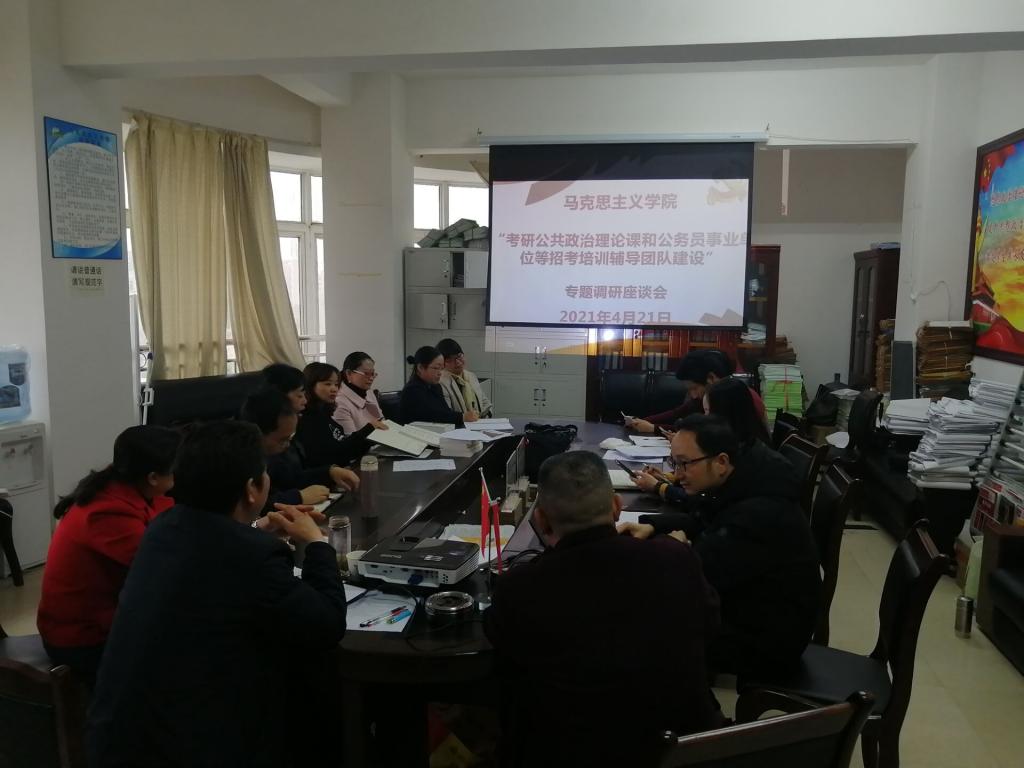根据学校“党史学习教育”和“牢记殷切嘱托、忠诚干净担当、喜迎建党百年”专题教育的安排,按照“察民情访民意”专题调研的要求,4月19日下午,马克思主义学院党委班子召开领题调研座谈会。