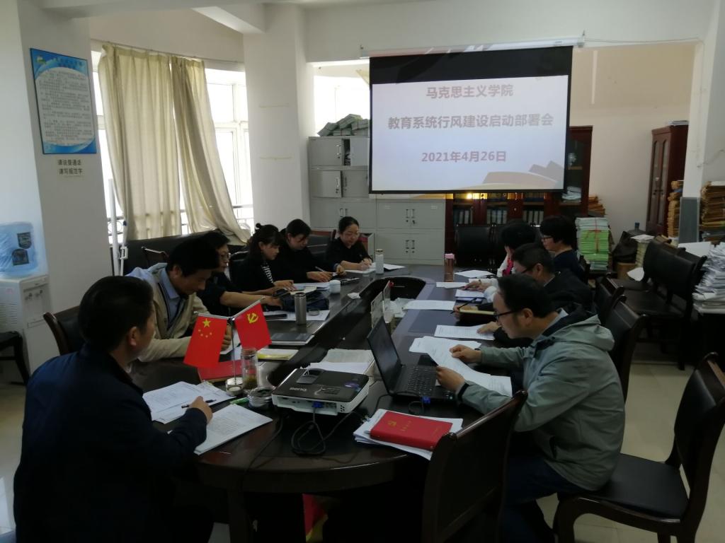 4月29日下午,马克思主义学院在院会议室召开教育系统行风建设启动部署会,会议由党委书记王罡同志主持,全体教师参加了会议。