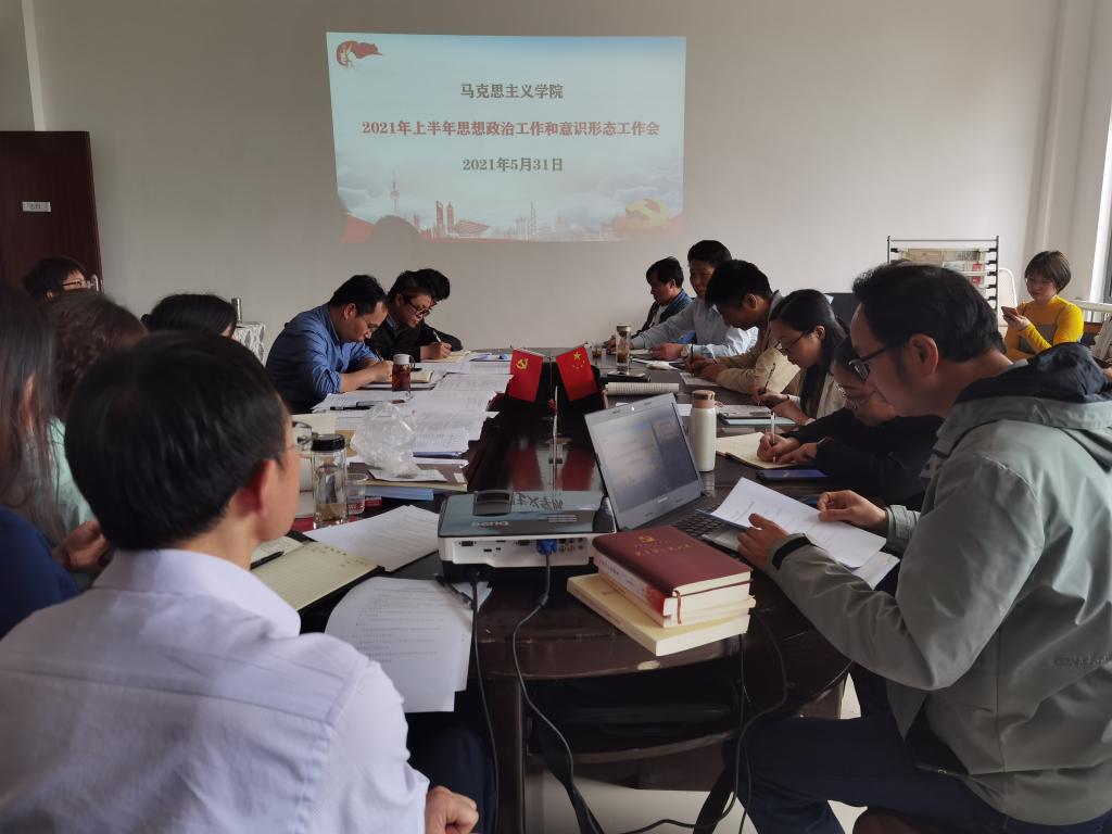 5月31日,马克思主义学院2021年上半年思想政治工作暨意识形态工作会在院会议室召开。会议由党委书记王罡主持,全体专兼职思政教师参加了会议。
