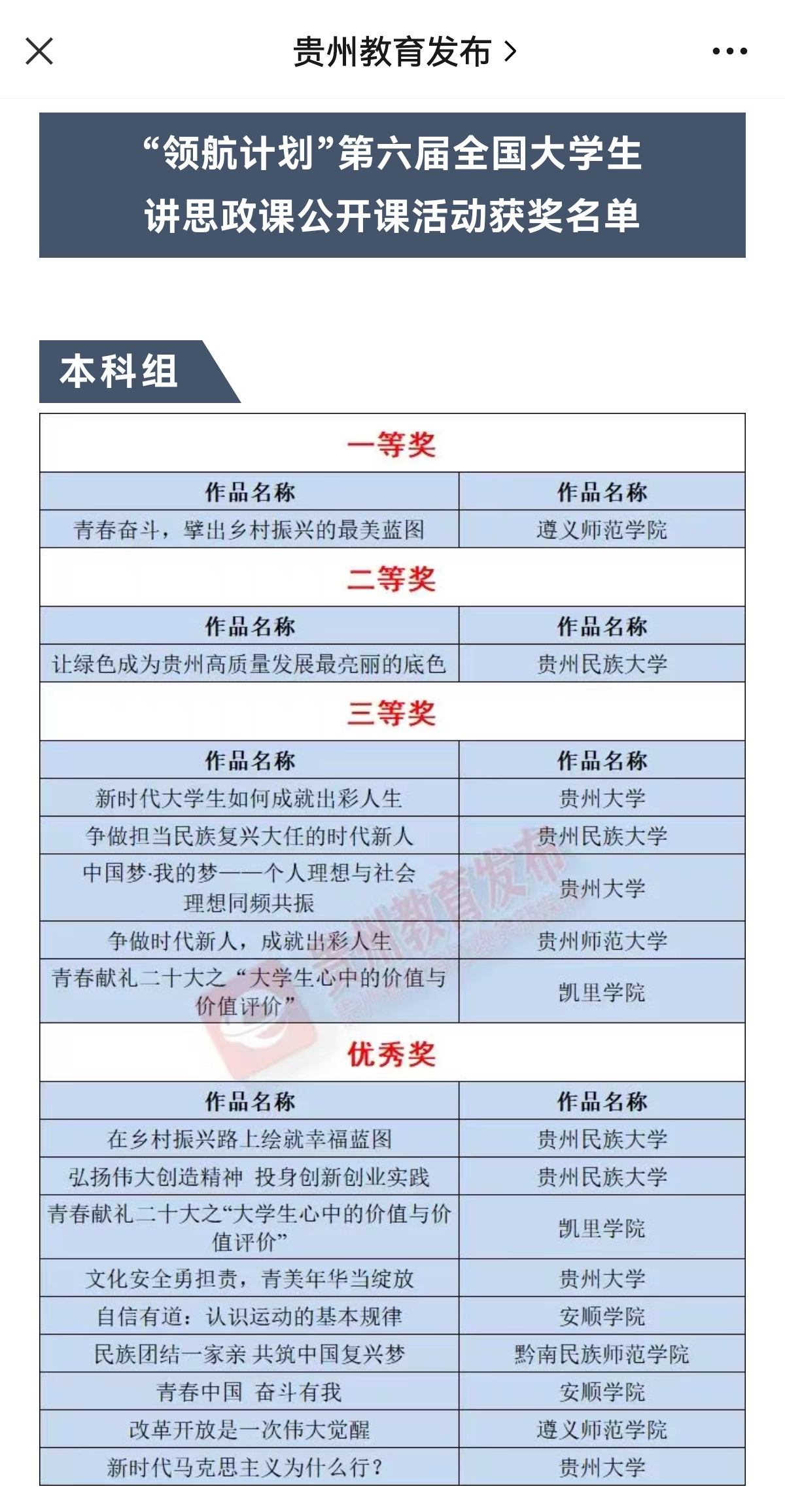 李尧睿等老师指导的《三封家书——一个共产党员的心路情怀》荣获“我心中的思政课”——第六届全国高校大学生微电影展示活动国家级优秀奖。肖平步等老师指导的《自信有道:认识运动的基本规律》和祝元梅等老师指导的《青春中国 奋斗有我》荣获“青春献礼二十大·强国有我新征程”——第六届全国高校大学生讲思政课公开课展示活动国家级优秀奖。