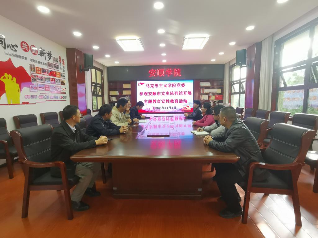 11月3日,安顺学院马克思主义学院党委、教师党支部、学生党支部全体党员一行来到安顺市党史陈列馆,以“赓续红色血脉 强党性建新功”为主题开展主题教育党性教育暨警示教育活动,本次活动由现场参观、集中学习和警示教育三个阶段进行,学习科学理论、回顾红色历史、强化自我革命。