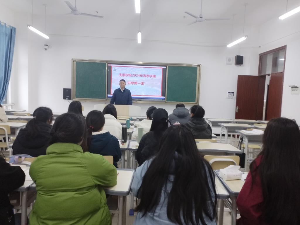 2024年3月4日上午,安顺学院党委副书记陶文彩到马克思主义学院为2020级中国共产党历史班学生上2024年春季学期“开学第一课”。