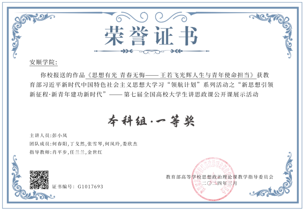 近日,“新思想引领新征程·新青年建功新时代”第七届全国高校大学生讲思政课公开课展示活动圆满落幕,安顺学院作品《思想有光 青春无悔——王若飞光辉人生与青年使命担当》荣获本科组全国一等奖。