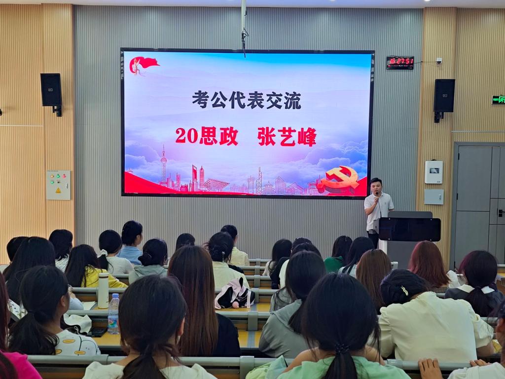 会上,马克思主义学院各年级各专业优秀学生代表分别作交流发言。第一批是考公务员代表,他们是2020级思想政治教育专业的张艺峰和刘梅;第二批是考研代表,她们是2020级思想政治教育专业的齐圣清和刘菲菲;第三批是国家励志奖学金获得者代表,她们是2022级思想政治教育专业的蒙婉琪和2021级思想政治教育专业的刘琴芳;第四批是获得国家级大学生创新创业计划项目代表,来自2021级思想政治教育专业的陈卓;第五批是第七届全国大学生讲思政公开课展示活动一等奖获奖团队代表,来自2022级中国共产党历史专业的丁戈然。各位优秀代表都积极分享了自己在学习、备考、社会实践、参加比赛等方面的经验和成果,还介绍了自己的学习方法和技巧,以及自己在面对困难和挑战时的应对策略和心路历程。他们的经历和成就,不仅让在场的同学们深受启发,也为大家树立了榜样。