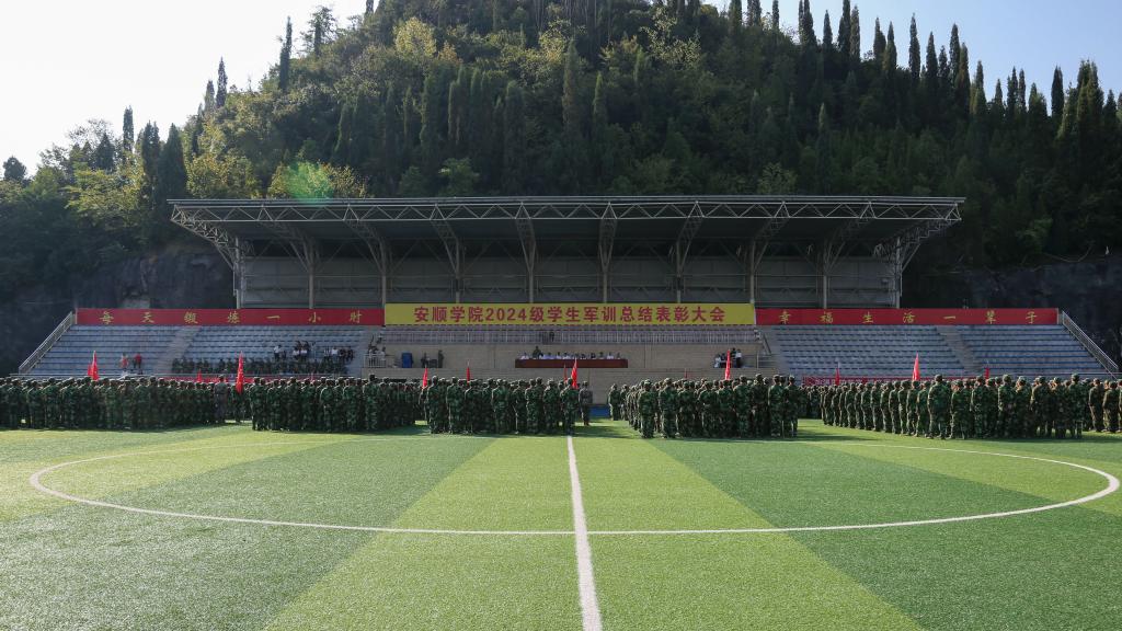 2024年9月25日上午,安顺学院在学校综合运动场召开2024级学生军训总结表彰大会。安顺学院党委书记罗荣彬,校长曾丽,党委委员、副校长韦英,副校长张来,党委委员、副校长、学生军训团团长殷红敏,各二级学院党委负责人,2024级学生军训团团部机关主要干部,2024级各班班主任,军训团各连副指导员,以及部分专职辅导员参加大会。大会由安顺学院党委副书记、军训团临时党委书记、政治委员陶文彩主持。