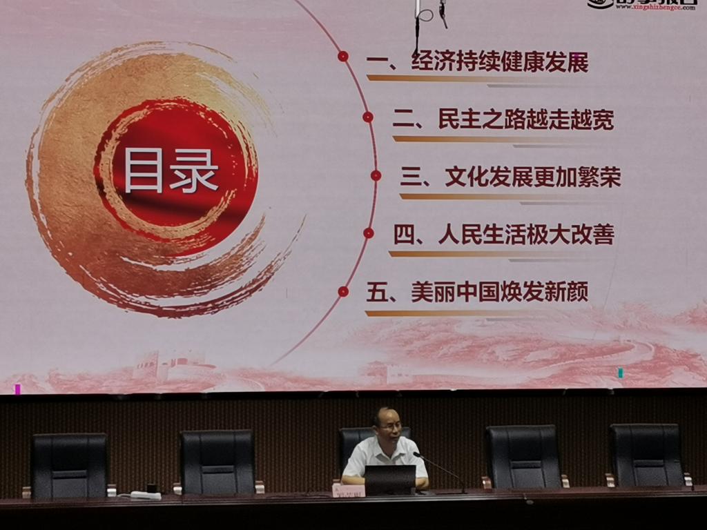 罗荣彬从经济持续健康发展、民主之路越走越宽、文化发展更加繁荣、人民生活极大改善、美丽中国焕发新颜等方面,结合国家、贵州、安顺经济社会发展的变化,与同学们分享了新中国成立75周年来取得的辉煌成就。