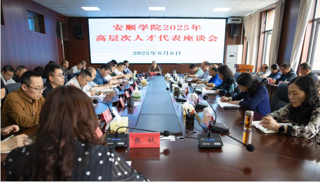 6月6日下午,安顺学院高层次人才代表座谈会在安道楼第一会议室召开。安顺学院党委书记程绪权、校长曾丽及全体在家校领导出席会议,14个二级学院高层次人才代表、机关党委高层次人才代表,各二级学院党委书记和组织部、党政办、人事处、科研处、教务处、计财处、后勤处、审计处部门负责人参会。会议由安顺学院党委副书记李琳主持。