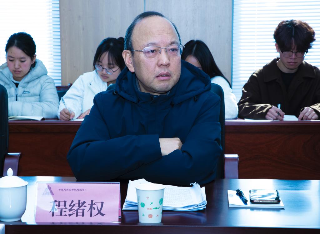 程绪权全程参加了2024级思政班“学习党的二十届四中全会精神,凝聚青春共识”主题班会活动。主题班会中,大家一同学习了党的二十届四中全会精神和习近平总书记重要讲话精神,同学们围绕学习党的二十届四中全会精神、“十五五”规划建议与人生规划、学校当前中心工作与个人未来发展、青年大学生与成长成才等方面纷纷发言,程绪权与同学们面对面进行了谈心谈话和友好交流,现场氛围既热烈又轻松,大家畅所欲言,收获满满。