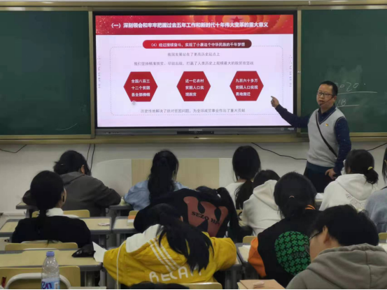 潘光才指出,党的二十大精神内容丰富,鼓舞人心,同学要结合专业特点,要把党的二十大精神融入到中国共产党历史中来学习,深入领会党的二十大精神的深刻内涵和重大意义,准确理解中国式现代化的具体内容与本质要求。