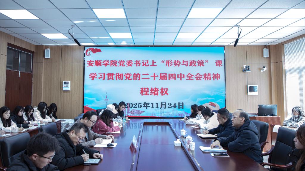 为深入学习贯彻党的二十届四中全会精神和进一步加强学校领导下沉青年大学生学习生活一线工作,2025年11月24日,安顺学院党委书记程绪权为2024级思政班学生上形势与政策课并参加了主题班会活动。
