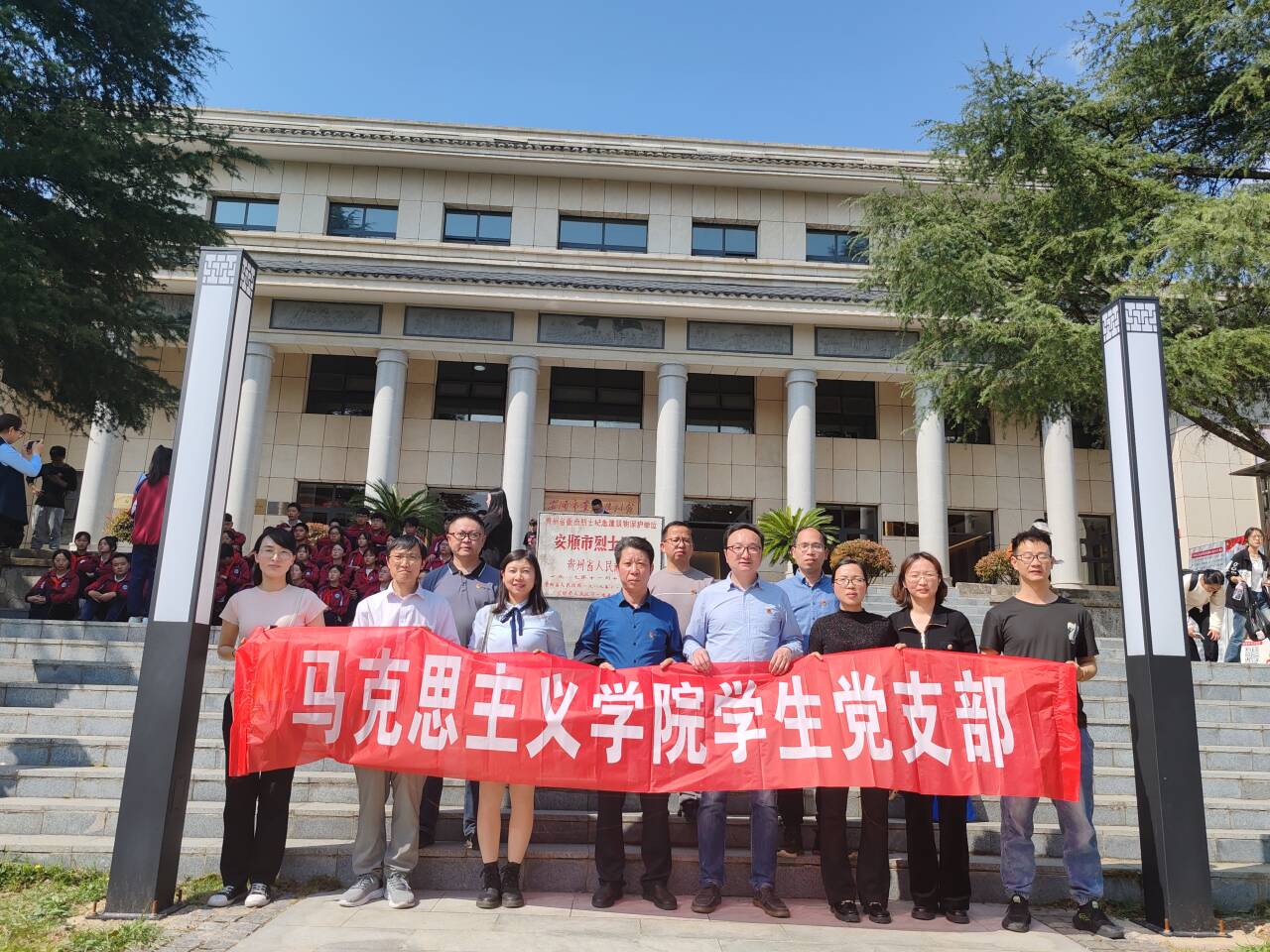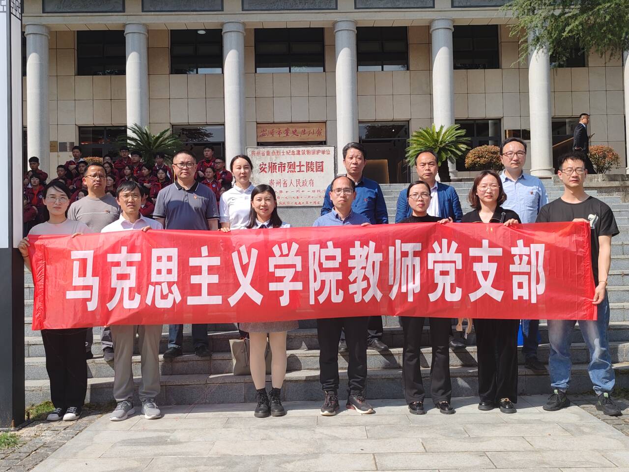 参加活动的全体党员、学生首先在庄严肃穆的烈士纪念碑前开展烈士祭扫活动,表达对烈士的崇高敬意和深切悼念之情。祭扫活动完成后,全体党员、学生在烈士墓前集中,聆听马克思主义学院院长黎进深现场讲授党课。他围绕革命烈士刘少山同志壮烈牺牲的革命故事,勉励师生要牢记党的光荣历史,继承革命先辈的遗志,树牢理想信念,珍惜当下,奋发有为,为民族复兴大业做出自己应有贡献。随后,两院师生一同参观了安顺市党史陈列馆,重温先辈们的英勇事迹和革命精神。