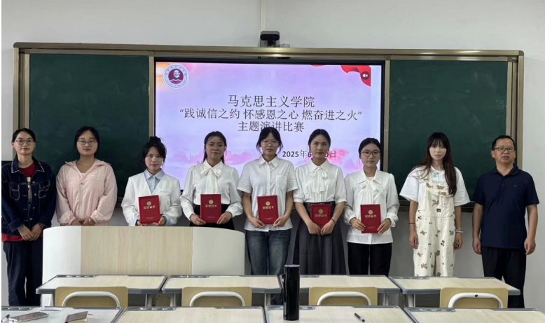 为深入培育和践行社会主义核心价值观,引导青年学子传承中华传统美德,激发奋斗精神,2025年6月20日,马克思主义学院在乐学楼505教室成功举办“践诚信之约,怀感恩之心,燃奋进之火”主题演讲比赛。