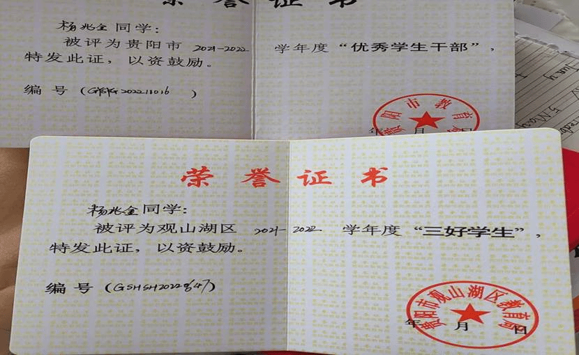 杨兆全同学荣获市级优秀班干部