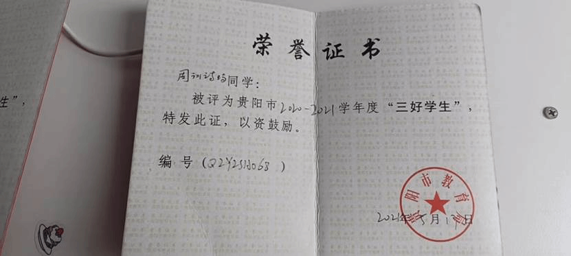 周训诗玙同学荣获市级三好学生