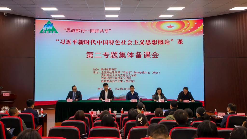 2019年3月18日,习近平主持召开学校思想政治理论课教师座谈会,强调“培养什么人、怎样培养人、为谁培养人”是教育的根本问题,思想政治理论课是落实立德树人根本任务的关键课程,思政课教师队伍责任重大。为深入学习贯彻习近平总书记关于学校思想政治理论课建设的重要论述,引导全省广大思政课教师积极推动新时代思政课教学改革创新,切实提升思政课的针对性和实效性,更好培养担当民族复兴大任的时代新人,由省教育厅主办,全国高校思政课“手拉手”集体备课中心(贵州)、安顺学院马克思主义学院、贵州师范大学马克思主义学院、全国高校思政课名师工作室(贵州师范大学)承办,安顺职业技术学院、贵州民用航空职业学院、安顺开放大学协办的贵州省高校“习近平新时代中国特色社会主义思想概论”课程集体备课会,于2024年3月23日以线上加线下相结合的方式在安顺学院圆满举行。安顺市各高校马克思主义学院(系/部)负责人、思想政治理论课教师代表等参加线下集体备课,同时,本次备课会通过网络直播向全省高校思政课教师分享。