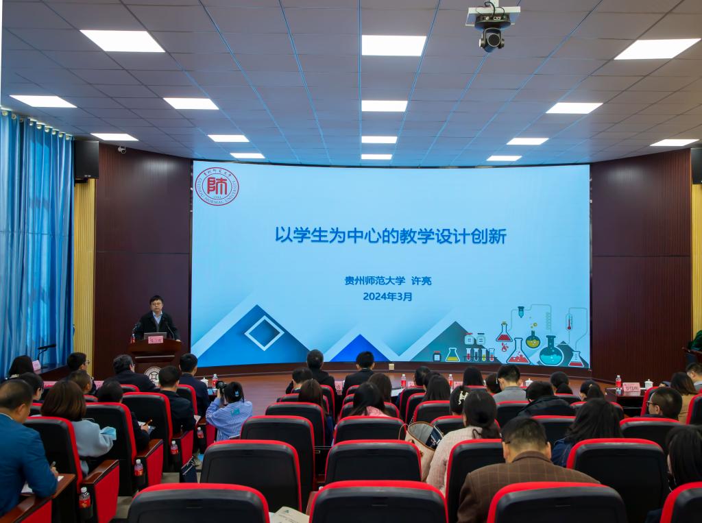 全国五一劳动奖章获得者、全国高校青年教师教学竞赛理科组一等奖第一名、全国高校教师教学创新大赛正高组一等奖获得者贵州师范大学许亮教授以《以学生为中心的教学设计创新》为主题作发言