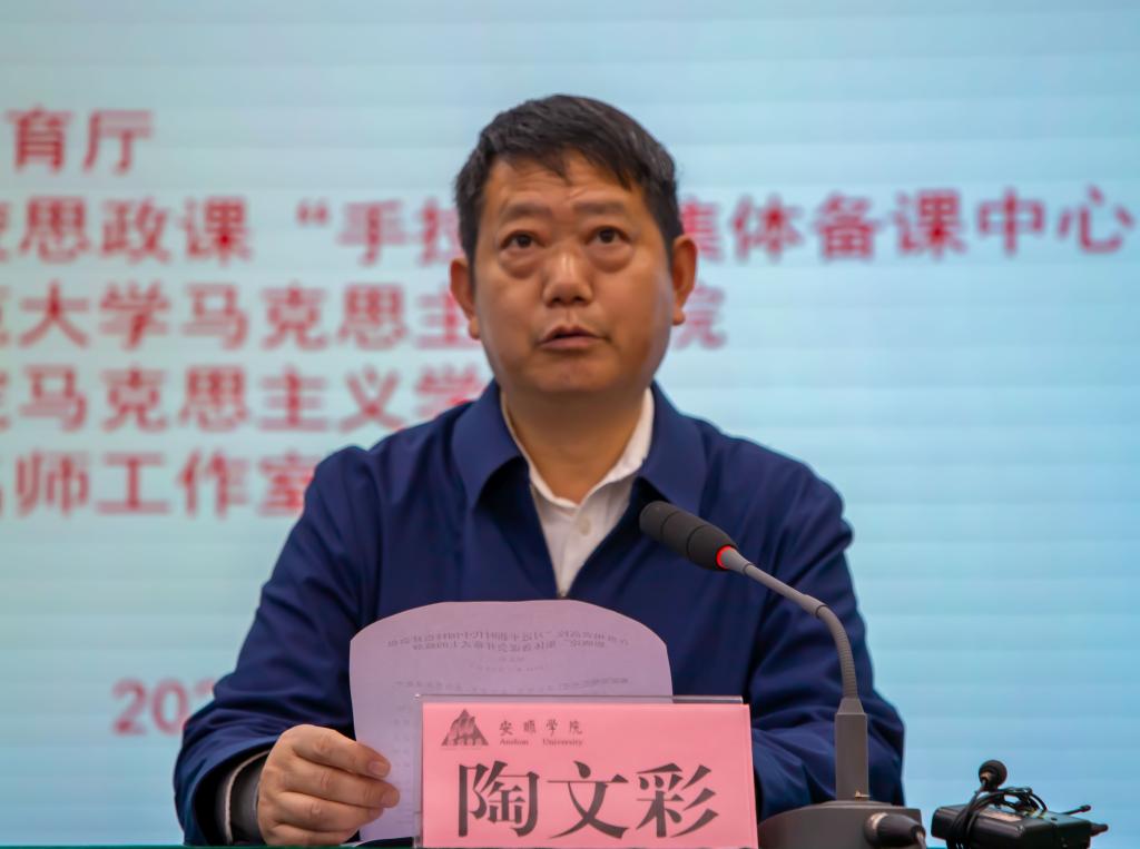在上午的开幕式上,安顺学院党委副书记陶文彩致欢迎词,省教育厅思政处领导和全国高校思政课“手拉手”集体备课中心负责人汪勇教授分别发表讲话,特别指出作为高校思政课的承担者,办好思政课,马克思主义学院责无旁贷,上好思政课,思政课教师队伍责任重大。马克思主义学院理应成为办好高校思政课的前沿阵地和战斗堡垒,必须守土有责、守土尽责、久久为功!