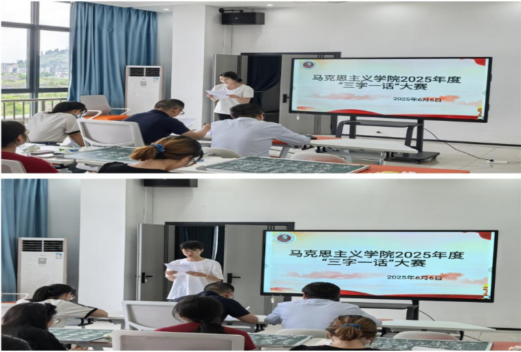 为弘扬中华优秀传统文化,提升师范生教师技能水平,夯实师范生教学基本功,2025年6月6日,马克思主义学院“三字一话”大赛在安顺学院学生社区一站式服务中心成功举办。本次比赛吸引了马院众多学子踊跃参与,马克思主义学院卢玉琳副院长、潘光才副书记、刘洋洋辅导员等担任比赛评委。