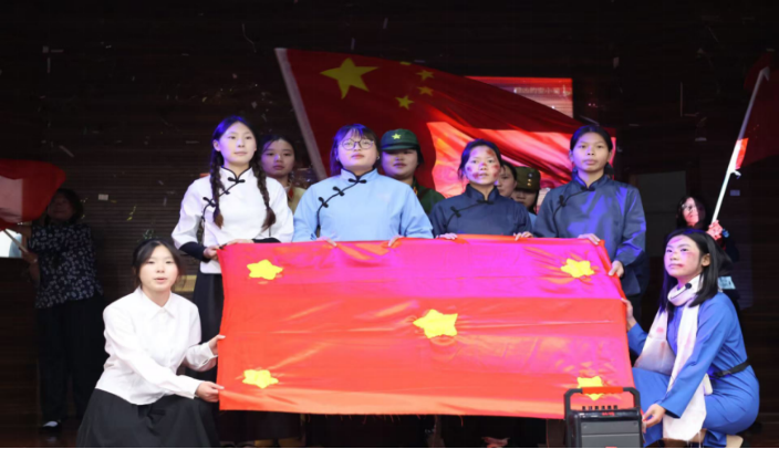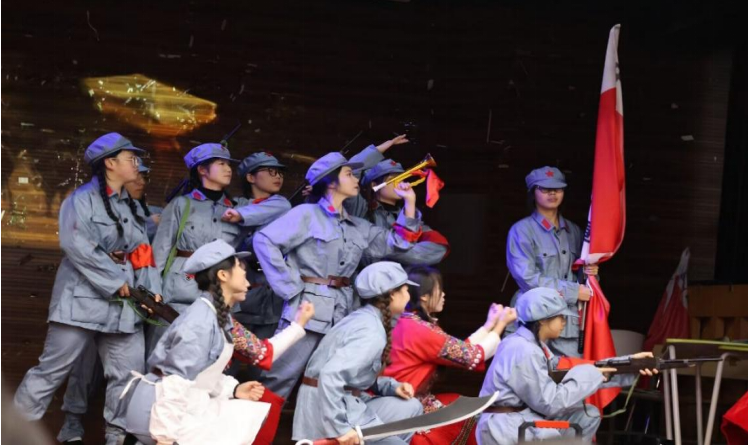 朝阳组带来的是《东方红之辉》,歌曲《东方红》传颂伟人功绩,舞蹈《东方红》展现人民敬仰,情景剧《四渡赤水出奇兵》彰显军事智慧,从韶山到天安门,回顾了毛泽东的光辉历程,激励新时代青年传承好毛泽东思想。