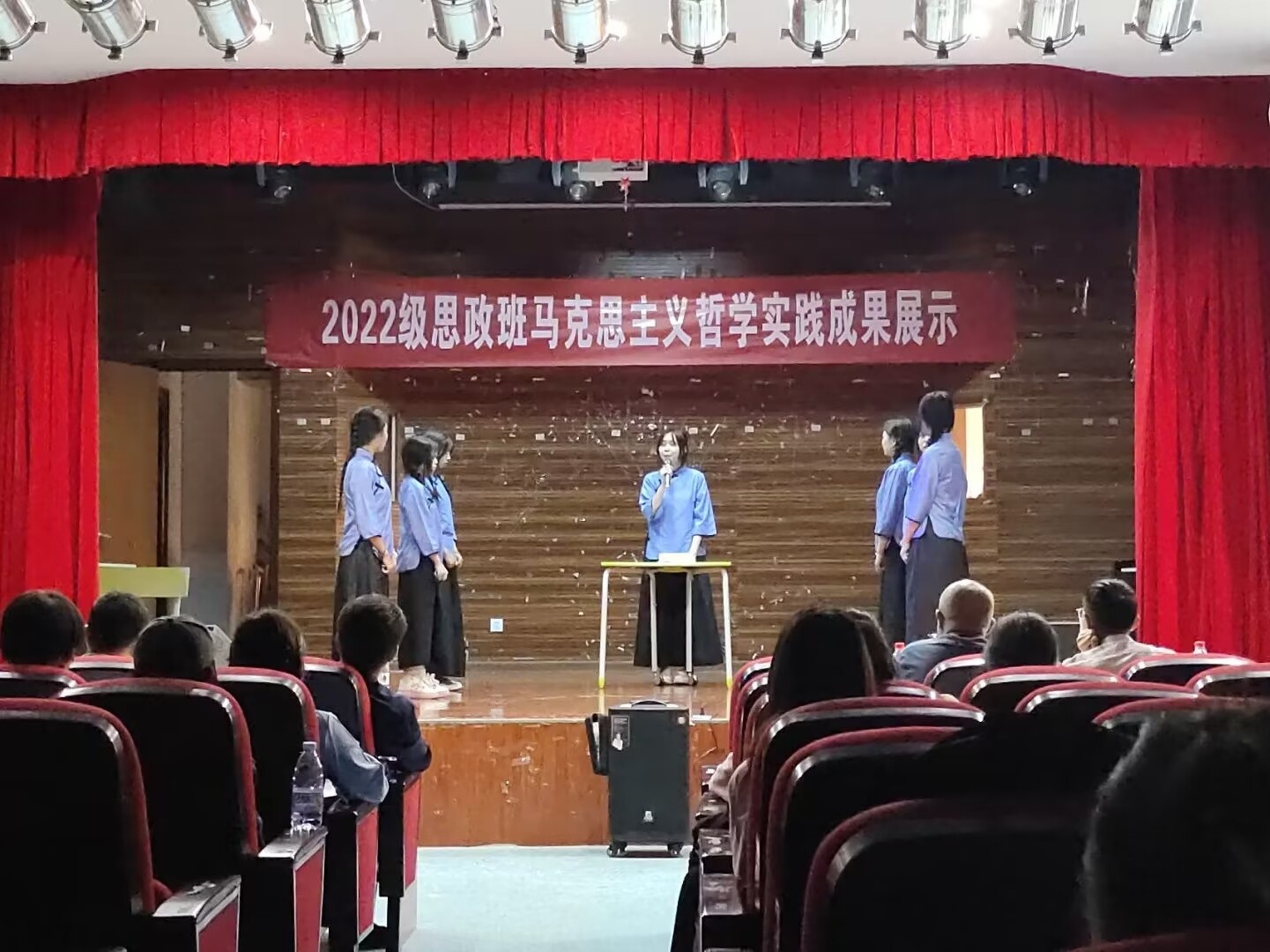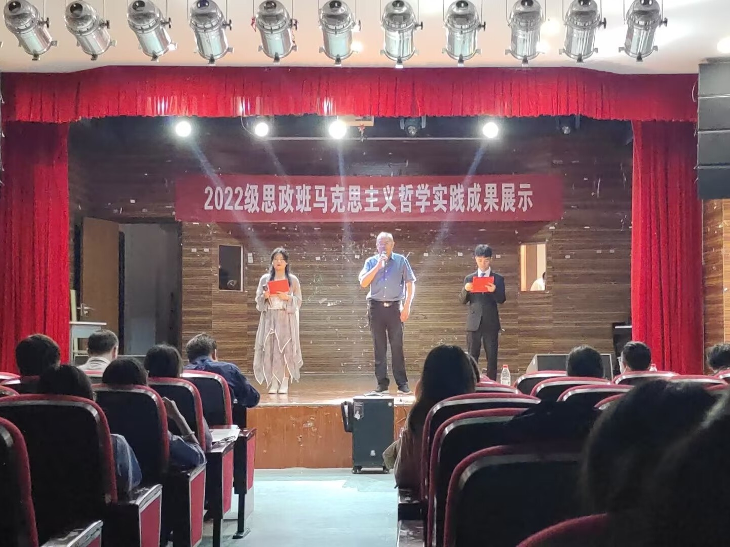 2023年6月1日,2022级思想政治教育班在学校综合楼演播厅举行《马克思主义哲学》实践成果展示活动。
